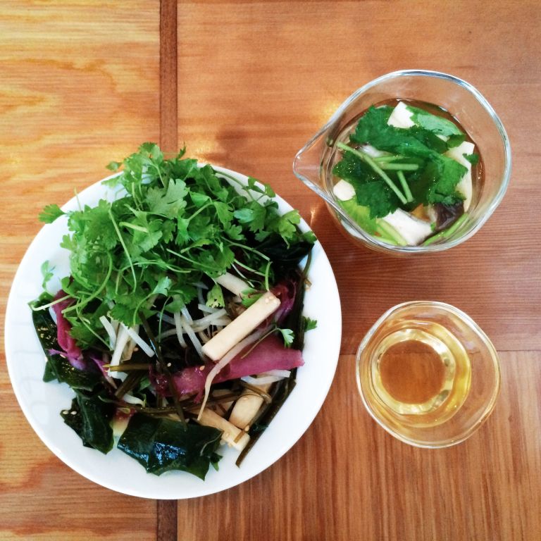 "I had an early, pre-yoga dinner at Shima in Abbot Kinney, which is my 3-year-old's favorite restaurant. I had a seaweed salad with micro cilantro and daikon, and a delicate broth of mushrooms and herbs."