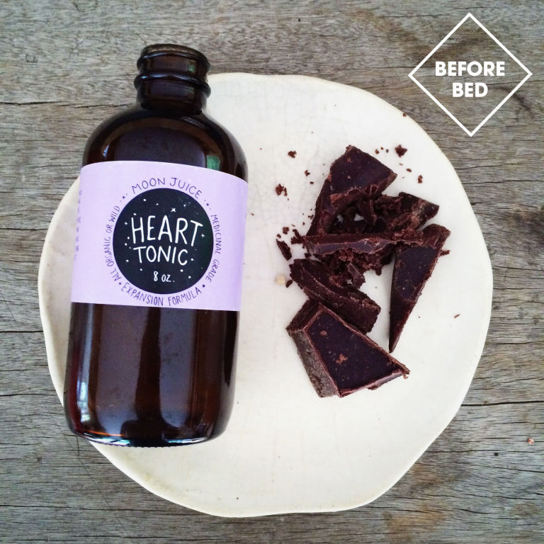 "At 11pm, I had a nightcap of heart tonic and raw chocolate made from one of my big batches—this one was made with our Moon Pantry heirloom raw cacao, reishi and Chaga mushroom, sprouted brown rice protein, and coconut oil. I love chocolate—and on some evenings, I don't want to deny the indulgence—so I've devised a million low glycemic recipes."